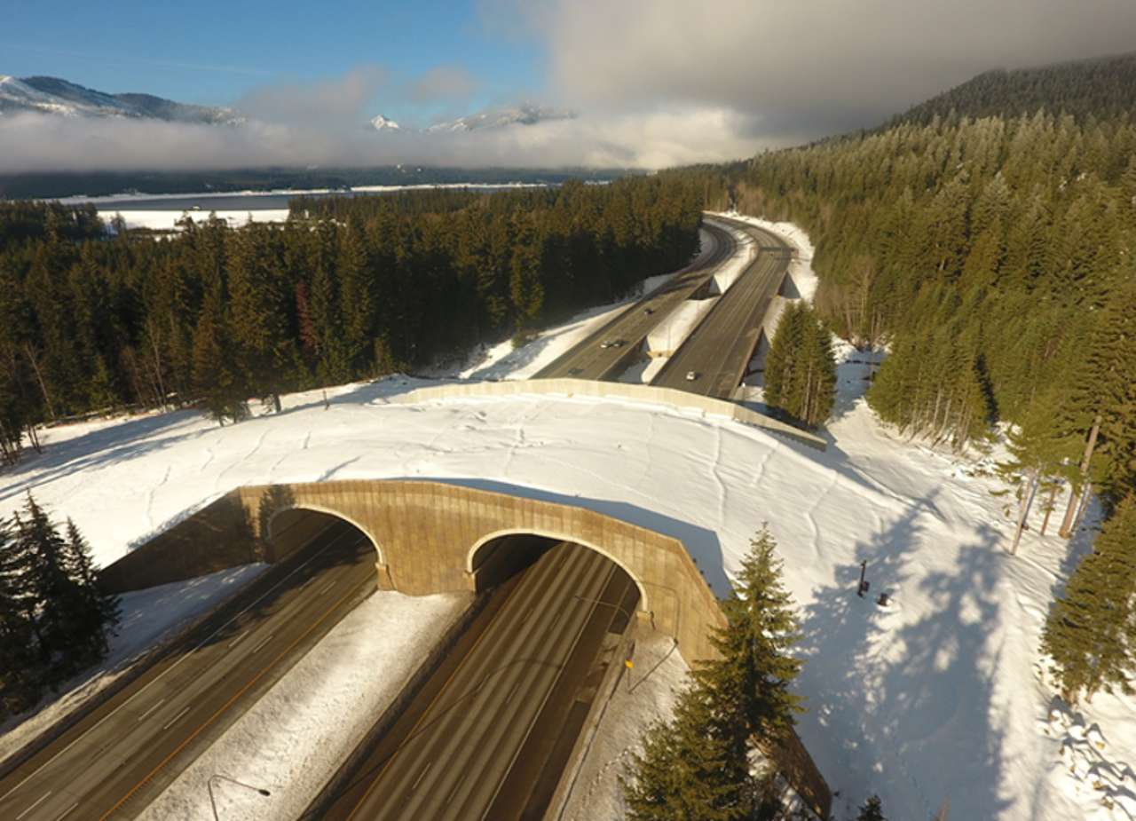 One of North America’s largest wildlife crossings, the I-90 Snoqualmie Pass East project is a series of bridges and underpasses that allow thousands of elk, deer, coyotes, and other species to safely cross the interstate and freely move within their natural habitat. This successful project has reduced traffic collisions by 90% and has recorded over 5,000 animal crossings per year.